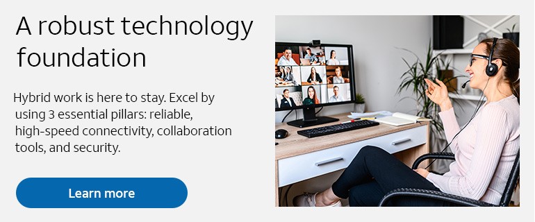 Don’t let your legacy technology hold you back. Remember, “an organization’s ability to adapt quickly to supply chain disruptions, time to market pressures, and rapidly changing customer expectations has become critical.1 It’s not too late for you to digitally transform the fortunes of your business. Explore how you can build a digitally nimble network architecture with AT&T Business.