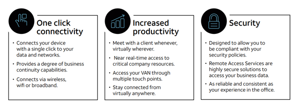 Additionally, organizations can literally give their teams a voice by enriching their existing collaboration environments, notably Microsoft Teams which now has 270 million users, up from 145 million in 2021. AT&T Cloud Voice allows you to manage business calls right from your Teams environment. And when it comes to supporting remote workers on the move, a range of support is available to enable one-click connectivity, embedded security, seamlessness of use, and increased productivity including NetMotion, AccessMyLAN, and Private Mobile Connection.