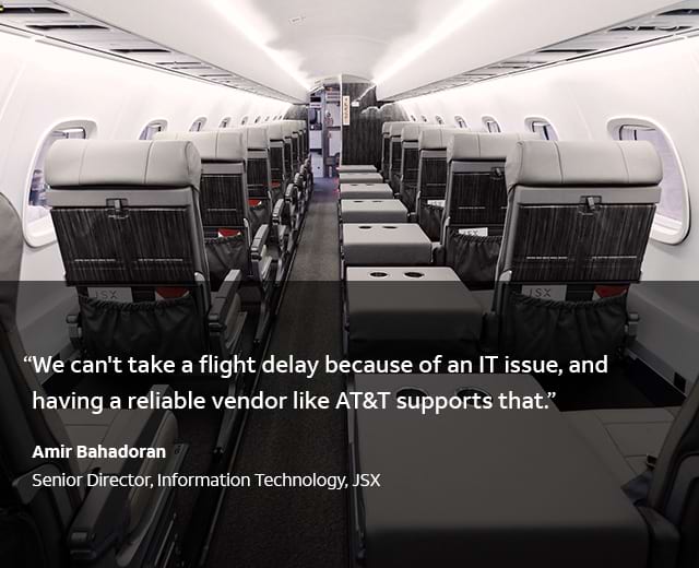 With AT&T Dedicated Internet, JSX gets the connectivity it needs to operate, including checking in passengers using tablet computers. It also means JSX can lean on AT&T for internet security rather than hiring cybersecurity experts.
