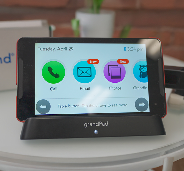 GrandPad designed an all-in-one tablet and phone for those 75 and older. The device has large icons and simple navigation. Seniors can use it to stay connected to friends, family, doctors, and even emergency services.