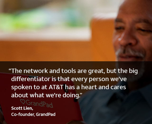 AT&T IoT connectivity helps ensure that GrandPad users can connect with family, friends, and caregivers. The AT&T Control Center provides a single platform to deploy, manage, and monitor GrandPad’s connected devices and IoT solutions.