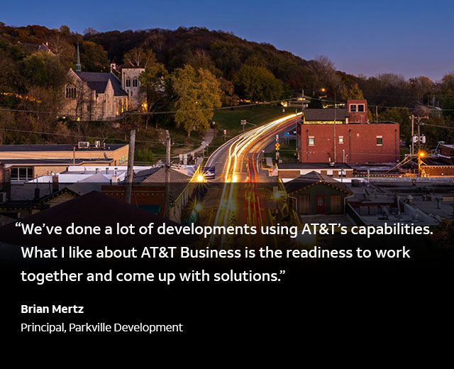 The owner believes the expertise of AT&T Business and the quality of its services makes Parkville Development more valuable to its customers. Plus, AT&T Business delivers all the services the new development needs under one agreement.
