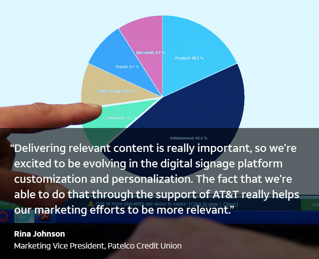 AT&T connectivity and end-to-end management deliver digital messages to credit union members, freeing Patelco’s IT and marketing teams to focus on their core responsibilities.