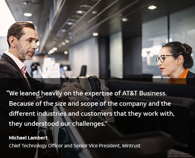 AT&T VPN service provides highly secure, scalable, and reliable connectivity. AT&T IP Flexible Reach and AT&T IP Toll-free services to support Wintrust’s expanding business and helps them deliver a trademark, personalized customer experience.