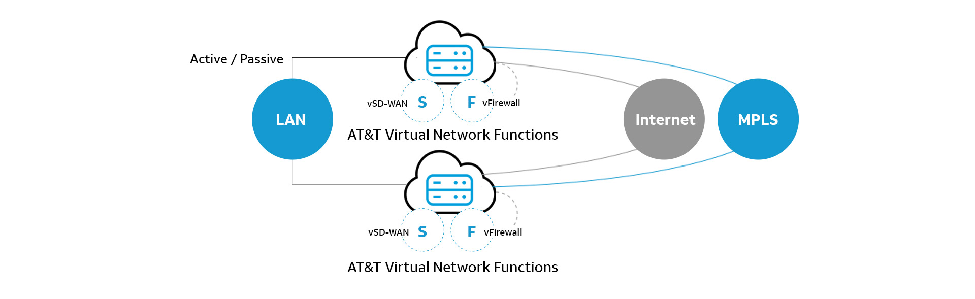 | Virtual Network Functions (VNFs) | An ever-growing library of AT&T-certified virtual network functions, from best of breed vendors, replacing traditional single purpose hardware with virtualized functions with multifunction VNFs capability, including SD-WAN, routing, and firewall. |